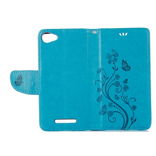 LEMORRY Per Wiko Jerry Custodia Pelle Cuoio Flip Portafoglio Borsa Sottile Protettivo Magnetico Chiusura Morbido Silicone TPU Cover Custodia per Wiko Jerry, Fortunato Erba Azzurro