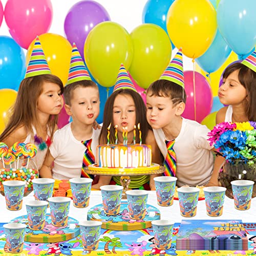 【Stoviglie per feste Lilo Stitch】: Il set di stoviglie per feste include tutto il necessario per una festa. Il set per feste include 16 piatti, 16 bicchieri di carta,20 asciugamani di carta, 1 tovaglia, può ospitare piccoli raduni di 10 persone, questa è la scelta migliore per le decorazioni per feste!