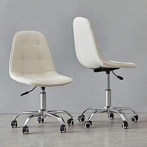 LEMROE Sedie da Scrivania Arredo Studio per Sedia Ufficio Bianca in Finta Pelle Sedia Ergonomica Posturale con Rotelle (Bianco- Ecopelle)