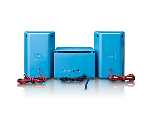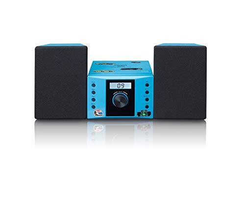 Lenco 810024 mc-013bu - sistema stereo compatto per bambini con lettore cd e display lcd, ingresso aux 2 x 2 w rms con adesivi blu