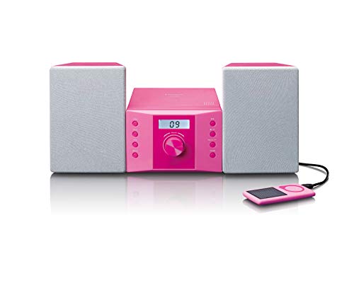 Lenco 810025 mc-013pk - sistema stereo compatto per bambini con lettore cd e display lcd ingresso aux 2 x 2 w rms con adesivi rosa