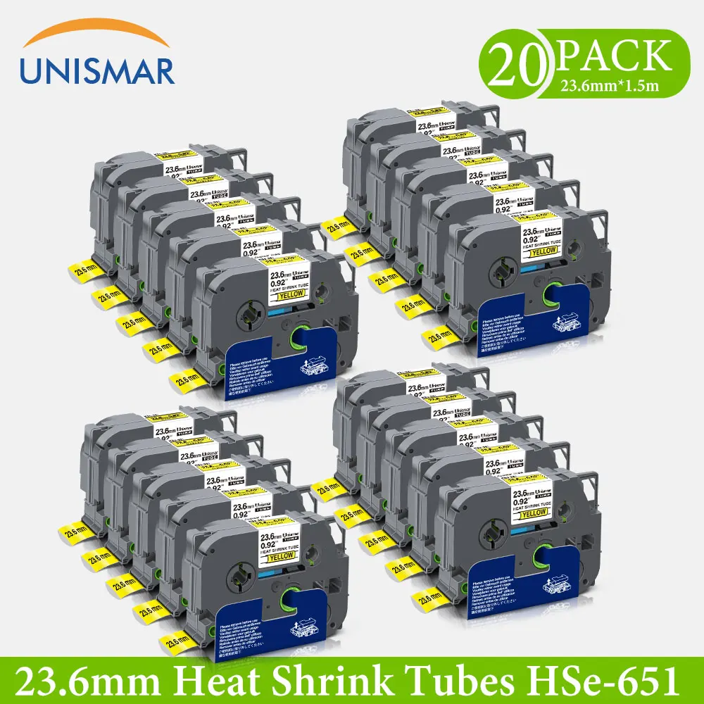 20PK 23.6mm Length Hse-651 Compatible For Brother Hse-651 Heat Shrink Tube for P touch Label Printer 1.5m Width
