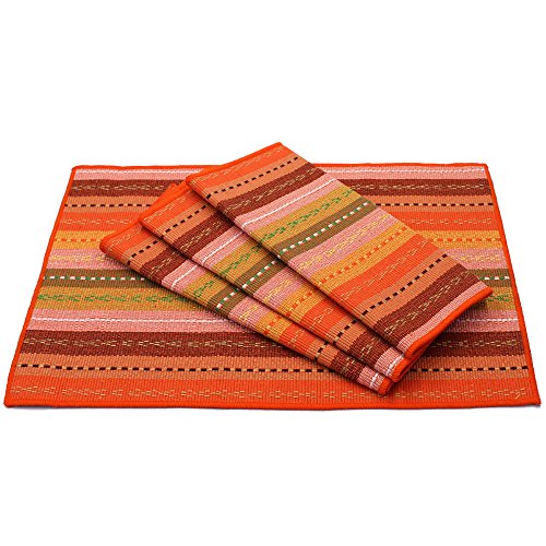 Lenhar - Tovagliette all'americana in cotone tessuto intrecciato a coste, lavabili, set da 4, 30,5 x 45,7 cm (arancione)