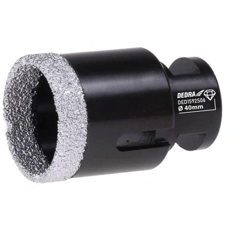 Dati tecnici: Dimensioni: 65 mm Lunghezza: 60 mm Tipo di pendenza: Diamante Tipo di montaggio: M14 La punta diamantata brasata sotto vuoto serve per praticare fori in piastrelle di ceramica, gres, cemento, mattoni, vetro, asfalto, laminato, PVC, acciaio, materiali non metalli ferrosi, legno, ecc. La tecnologia brasata sottovuoto garantisce elevata purezza e durata della connessione dei grani di diamante con la matrice e il corpo. Non sono presenti elementi brasati o saldati al laser (segmenti diamantati) che possano separarsi dal corpo durante il funzionamento, garantendo il funzionamento sicuro dell'utensile. Utilizzando una filettatura M14, la punta può essere montata su qualsiasi smerigliatrice angolare. I lacci VB possono essere utilizzati per l'uso asciutto e bagnato.** Foto illustrative.