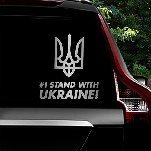 Leniutor 2 adesivi Tryzub Trident ucraino, con scritta "I Stand With Ukraine", adesivi riflettenti per auto, camion, paraurti, pareti, finestre (argento spazzolato