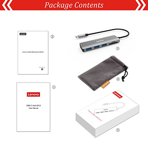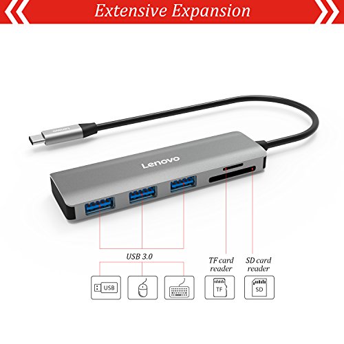 Lenovo USB C Hub, alluminio 5 porte USB tipo C Hub compatibile con USB 3.0, micro SD/SD/TF Card Reader per MacBook Pro 2017/2016, Chromebook Pixel e più grigio Evelina