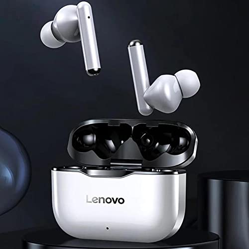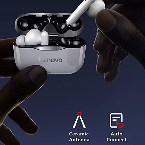Lenovo - Auricolare originale LP1 TWS senza fili Bluetooth 5.0 Dual Stereo, microfono a comando Touch, lunga autonomia stand-by 300 mAH IPX4, a prova d'acqua, riduzione rumore, custodia di ricarica