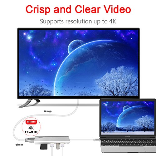 Lenovo USB C Hub, Ultra Slim Aluminum USB C Adapter with 3 USB 3.0 Ports, 4K HDMI, SD/TF Card Reader, Compatible for 2016/2017 MacBook Pro Google Chromebook Nintendo Switch and More USB-C Devices