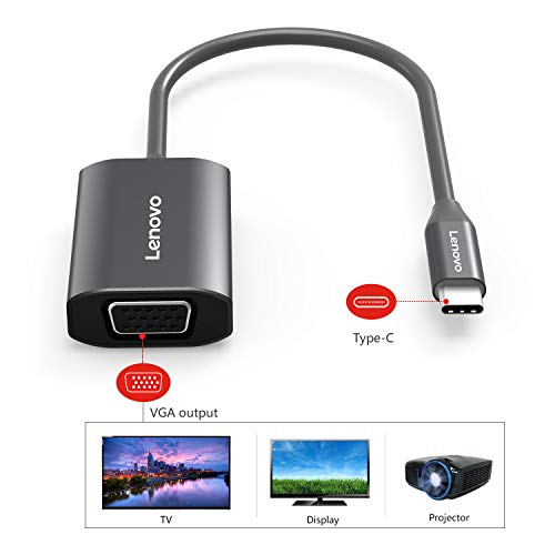 Lenovo USB-C a HDMI a VGA, aluminum USB tipo C a 4 K HDMI 1080p convertitore VGA per 2016/2017 MacBook Pro, Chromebook Pixel, Dell xps, Thunderbolt 3 Co VGA Grey