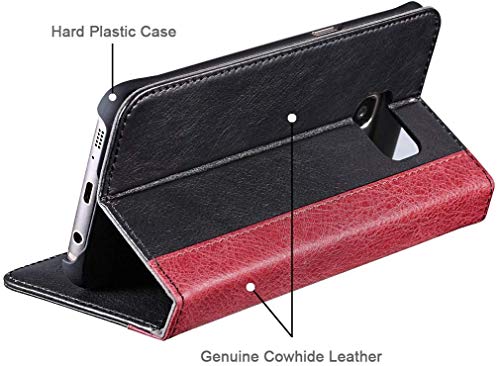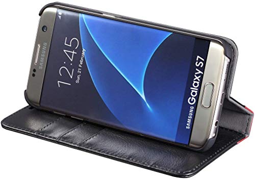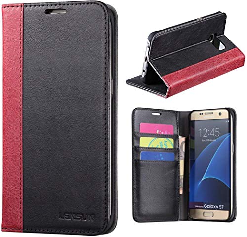 Lensun Cover Galaxy S7, Vera Pelle Cuoio Custodia Genuino Annata a Portafoglio con Coperchio Apribile per Samsung Galaxy S7 5.1" - Nero (S7-FG-BK)