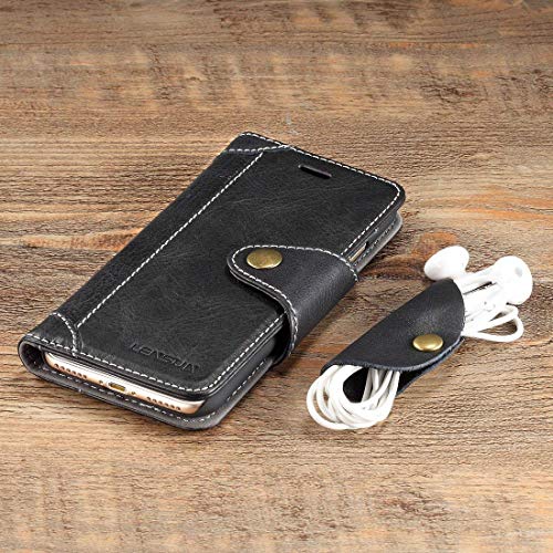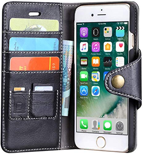 Lensun Cover iPhone SE 2020, Cover iPhone 7, Cover iPhone 8, Vera Pelle Cuoio Custodia Genuino Annata a Portafoglio con Chiusura Magnetico per iPhone 7 e iPhone 8 4.7" - Nero (7G-GT-BK)