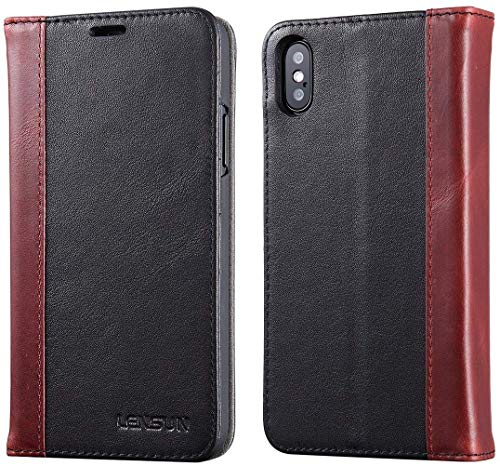 Lensun Cover iPhone 7 Plus, Cover iPhone 8 Plus, Vera Pelle Cuoio Custodia Genuio Annata a Portafoglio con Coperchio Apribile per iPhone 7/8 Plus 5.5" - Nero (7P-FG-BK)