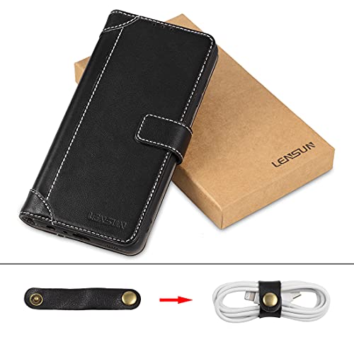 [Slot per Schede + Funzione Pieghevole]: La LENSUN custodia in vera pelle ha 3 slot per schede + 1 slot per carte di credito per riporre carte di credito, biglietti da visita, banconote, ecc. Questa custodia può essere utilizzata come supporto per guardare film o chat video e puoi regolare liberamente l'angolo di visione, permettendoti di godere di un'esperienza visiva confortevole.