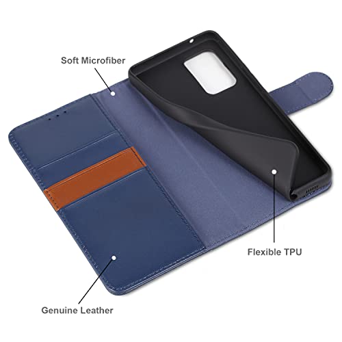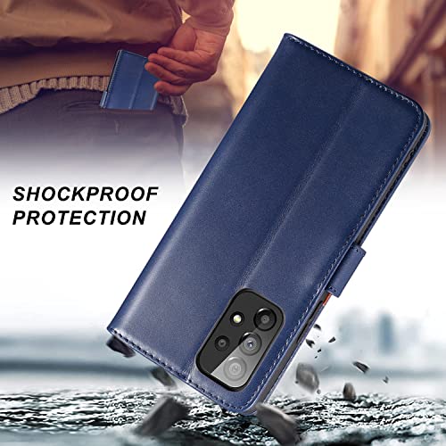 Lensun Cover per Samsung Galaxy A53 5G, Custodia in Vera Pelle [RFID Blocking] Libro con Portafoglio Chiusura Magnetico Flip Custodie Cuoio per Telefono Samsung Galaxy A53 5G -Blu scuro (A53-JT-DE)