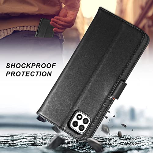 Lensun Cover per Samsung Galaxy A22 5G, Custodia in Vera Pelle [RFID Blocking] Libro con Portafoglio Chiusura Magnetico Flip Custodie Cuoio per Telefono Galaxy A22 5G - Nero (A22-JT-5BK)