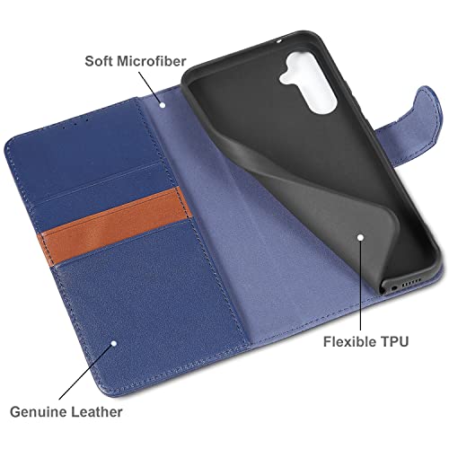 Lensun Cover per Samsung Galaxy A54 5G, Custodia in Vera Pelle [RFID Blocking] Libro con Portafoglio Chiusura Magnetico Flip Custodie Cuoio per Telefono Samsung Galaxy A54 5G -Blu scuro