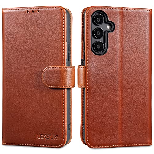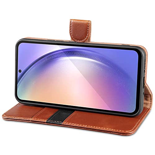 Lensun Cover per Samsung Galaxy A54 5G, Custodia in Vera Pelle [RFID Blocking] Libro con Portafoglio Chiusura Magnetico Flip Custodie Cuoio per Telefono Samsung Galaxy A54 5G -Marrone Scuro