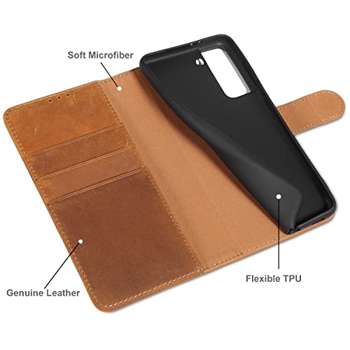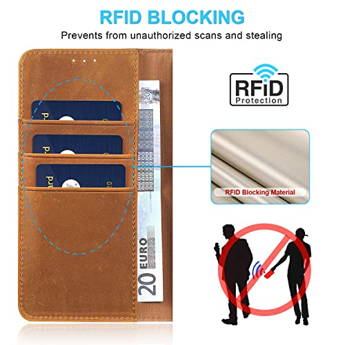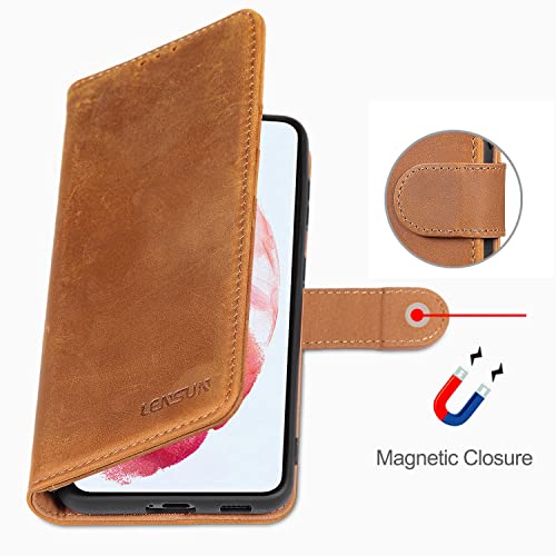 Lensun Cover per Samsung Galaxy S21 5G, Custodia in Vera Pelle [RFID Blocking] Libro con Portafoglio Chiusura Magnetico Flip Custodie Cuoio per Telefono Samsung S21 5G - Marrone retrò (S21-JT-AB)