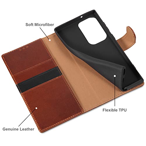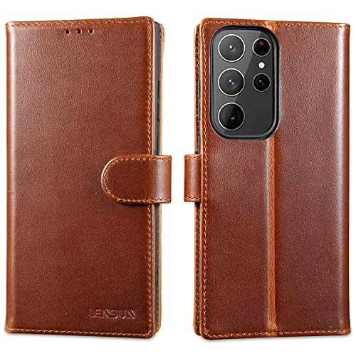 Lensun Cover per Samsung Galaxy S23 Ultra, Custodia in Vera Pelle [RFID Blocking] Libro con Portafoglio Chiusura Magnetico Flip Custodie Cuoio per Samsung S23 Ultra 5G - Marrone scuro (S23U-JT-DB)