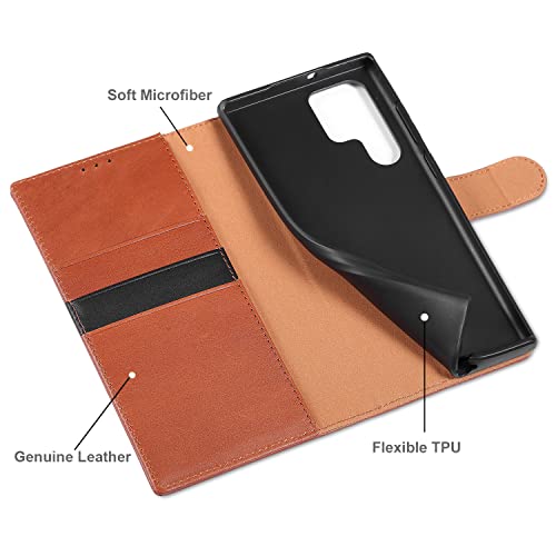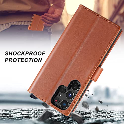 Lensun Cover per Samsung Galaxy S22 Ultra 5G, Custodia in Vera Pelle [RFID Blocking] Libro con Portafoglio Chiusura Magnetico Flip Custodie Cuoio per Telefono Samsung S22 Ultra 5G-Marrone(S22U-JT-BN)
