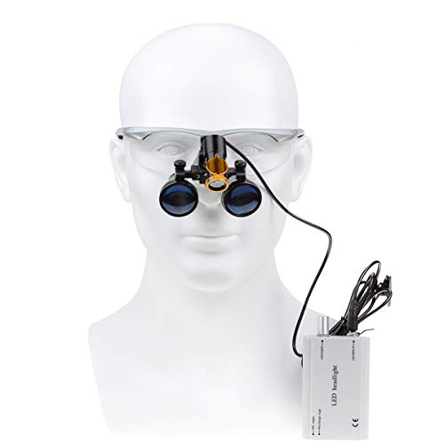 Mike - Lente di ingrandimento per binocolo dentale, 3,5 x 420 mm, 5 W, portatile, in plastica, a LED, con clip, con sacchetto di colth (argento)