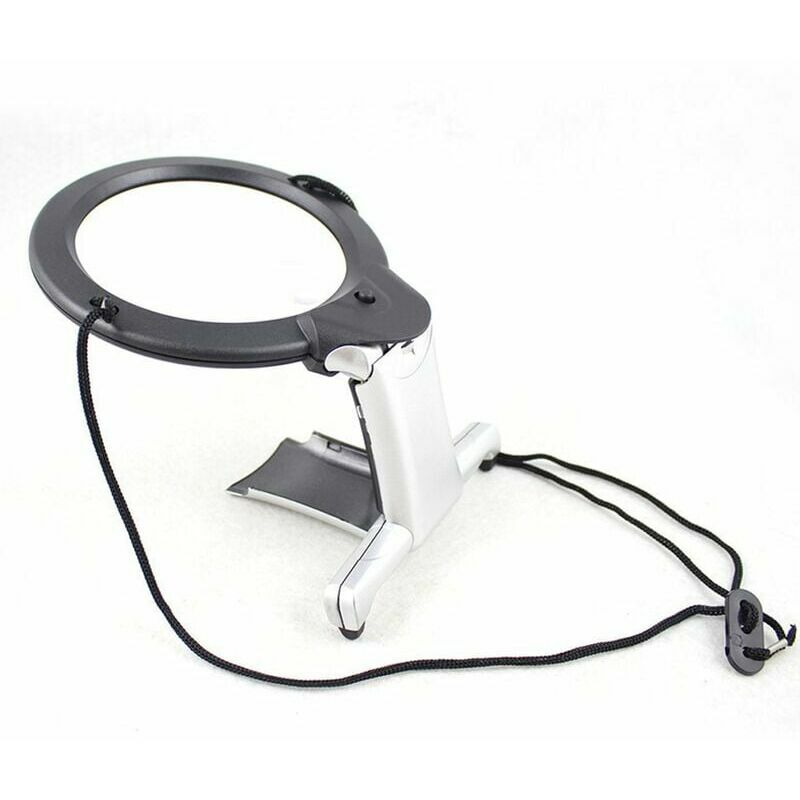 Lente d'ingrandimento da collo e da tavolo 2 luci LED integrate con interruttore on/off. Ideale per controllare piccoli testi, immagini, giornali, istruzioni sui farmaci, ecc. Le lenti ottiche ti aiuteranno enormemente durante il punto croce, il cucito, il ricamo, la lettura di libri, l'artigianato, la saldatura, gli hobby o piccoli progetti di riparazione.< /p> 2 luci a LED luminose forniscono un'illuminazione ottimale e funzionano in modo efficiente al buio o durante il giorno. Fornire un ambiente di illuminazione stabile e continuo. Richiede 3 batterie AAA. (non incluso nella confezione). La nostra lente d'ingrandimento ha una speciale lente ravvicinata con ingrandimento 6x. La nostra lente d'ingrandimento ha una visione ampia e chiara. L'angolazione della testa della lente d'ingrandimento può essere regolata a piacere. Non solo questa lente d'ingrandimento può essere appesa al collo, ma può anche essere aperta su un tavolo con un supporto integrato. Appesa al collo, questa lente