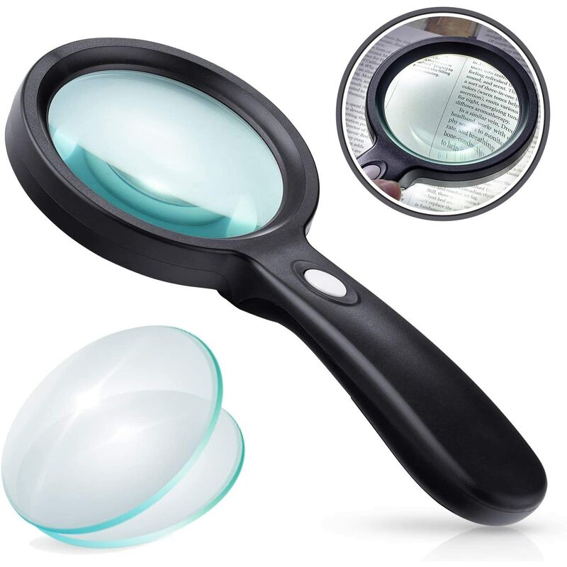 (alimentato da batterie AAA. Batterie non incluse) [Vetro grande da 90 mm] - Vetro di diametro 90 mm (attualmente diametro 105 mm incluso supporto). La vera lente fa bene agli occhi. Impugnatura ergonomica progettata per una presa estesa. Perfetto per la lettura, i puzzle, l'ispezione, le monete, i gioielli, l'esplorazione.
