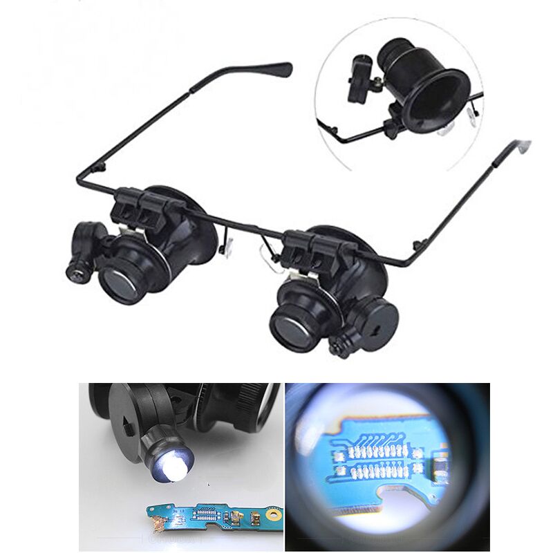 Mani Libere - Usa questa lente d'ingrandimento per archetto con due mani. A seconda di ciò che ti sembra più comodo, puoi attaccare la lente d'ingrandimento alla testa usando cinghie o rami. L'obiettivo può essere inclinato liberamente fino a 180° per ottenere l'angolazione più comoda. 【Luci】 Ci sono due luci a LED accanto all'obiettivo, alimentate da una pila a bottone. Il vano batteria è separato dall'obiettivo. 【Utilizzo】 Questo obiettivo è ampiamente utilizzato nella riparazione di orologi, microincisione, saldatura, ecc.