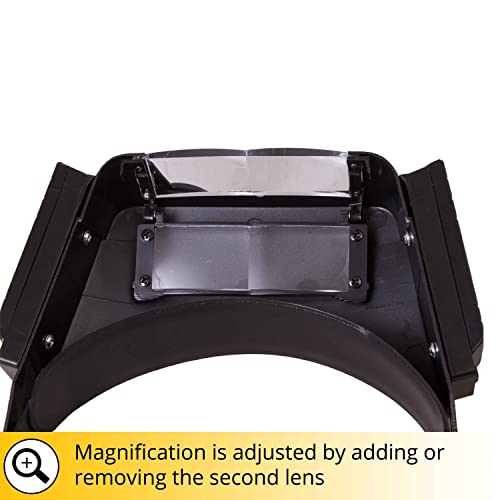 [Illuminazione a LED]: è possibile lavorare anche al buio più fitto grazie alle intense luci a LED, alimentate a batteria, posizionate ai lati della lente