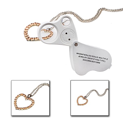 Lente di Ingrandimento da Gioielliere Illuminata LED Lente di Ingrandimento con due lenti, 60X, 12MM e 30X, 22MM, Completa di Confezione da Vendita al Dettaglio