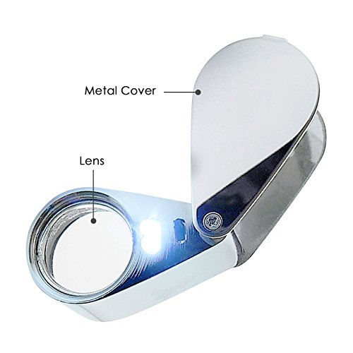Lente d'Ingrandimento per Gioiellieri, Lente ingrandimento con luce, portatile tascabile lente, Magnifying Glass Magnifier pieghevole per gioielli, monete, francobolli, antiquariato