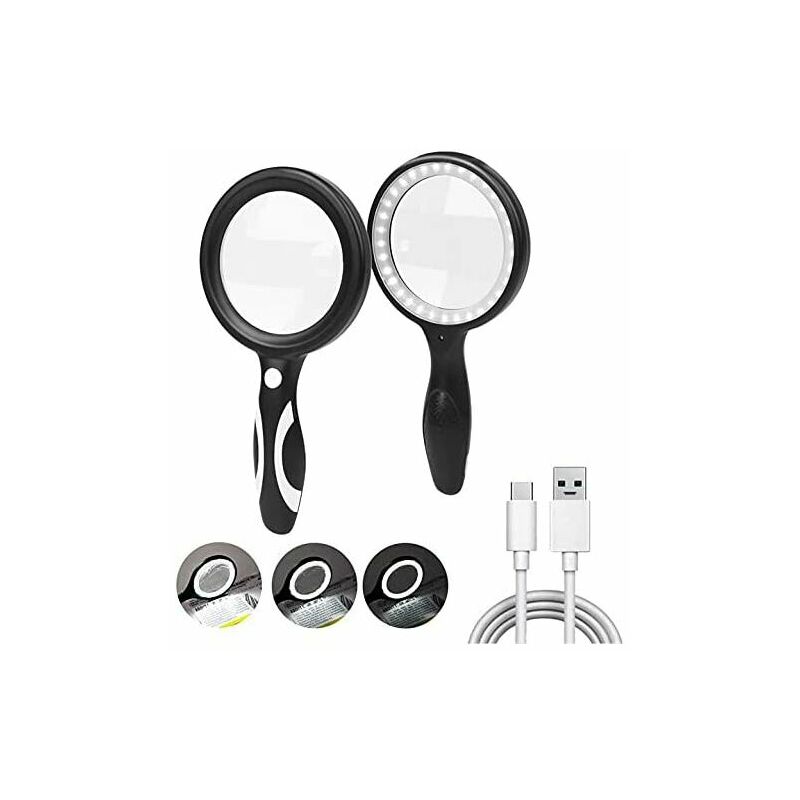 Design lente d'ingrandimento a doppia lente: è una lente di cristallo infrangibile e ad alta risoluzione con ingrandimento 30ois. Luminosità regolabile con 3 modalità: ha 33 luci D, le luci s D migliorano la qualità dell'immagine di notte, è attivato da un interruttore integrato nell'impugnatura, l'interruttore si trova esattamente dove si trova il pollice. ed è la versione di ricarica USB (incluso cavo di ricarica USB). Facile da usare e lunga durata della batteria: il manico sottile è realizzato in plastica ABS ecologica e offre una buona presa. L'interruttore antiscivolo si trova esattamente dove si trova il pollice e consente di accendere e spegnere facilmente. Contiene una batteria al litio da 1200 mAh inclusa con una lunga durata della batteria : Luce scarsa - 26 ore, luce media - 8 ore, luce alta - 6 ore. UN BUON REGALO LUPE: regalo ideale per Natale, grazie, festa del papà, Festa della mamma, Festa dei bambini per anziani e bambini. Per gli anziani, questa lente