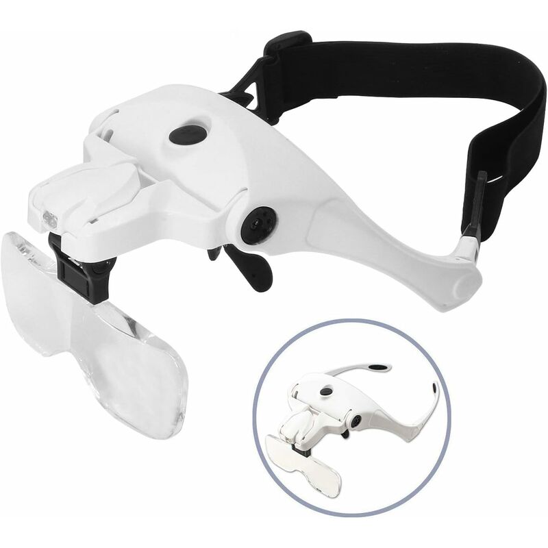 Caratteristiche: Lente d'ingrandimento tipo occhiali con 2 luci a LED, comoda da usare. Vieni con cinturino per occhiali e fascia per la sostituzione. Le luci a LED possono essere regolate, soddisfare diverse condizioni di illuminazione e risparmiare energia. L'ampia lente può aumentare il raggio visivo. Esistono cinque tipi di obiettivi con diversi ingrandimenti. La fessura dell'obiettivo mobile viene utilizzata per regolare la lunghezza focale tra l'obiettivo e l'oggetto. Non è possibile utilizzare abbastanza luce con 2 LED. Anche l'angolo di illuminazione è regolabile. Ottimo strumento di ingrandimento per leggere libri, leggere giornali, disegnare, ecc. Colore: bianco Materiale lenti: lenti acriliche Materiale montatura: ABS+PP Ricaricabile tramite cavo USB, nessuna batteria aggiuntiva è richiesto. Confezione: 1 lente d'ingrandimento per fascia con luce LED 1 fascia per la testa sostituibile 5 lenti intercambiabili: 1.0X, 1.5X, 2.0X, 2.5X, 3.5X 1 panno per la pulizia 1 cavo USB