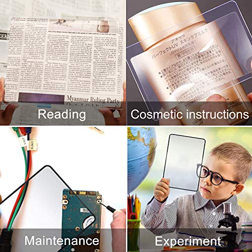Ampio utilizzo: la nostra lente d'ingrandimento rettangolare grande è ampiamente utilizzata per leggere libri, giornali, carte, cataloghi, cucito, creazione di gioielli, ricamo, maglieria, intaglio, taglio, artigianato, ispezione, riparazione e altri hobby che richiedono precisione.
