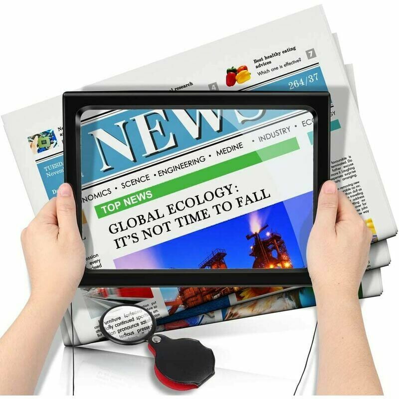 Dimensioni 27,5 x 20,5 cm, ampia area di visualizzazione, immagine cristallina, con la nostra lente d'ingrandimento a LED rettangolare puoi vedere l'intero foglio di carta A4 e il libro. 【Lente d'ingrandimento con 12 LED】La lente d'ingrandimento è dotato di 12 LED a risparmio energetico - Distribuiti attorno alla cornice della lente d'ingrandimento - Il nostro LED crea un'area di visualizzazione uniformemente illuminata senza abbagliamento per gli occhi - Ideale per