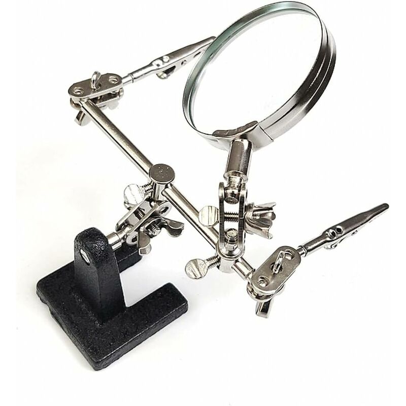 Possono anche essere ruotati e fissati a diverse angolazioni, sono montati su un braccio rotante. Non si tratta solo di guardarli attraverso una lente d'ingrandimento, ma anche di raccogliere oggetti in modo sicuro da due clip a coccodrillo che lascia entrambe le mani libere per eseguire qualsiasi lavoro necessario. Questa terza mano è estremamente utile quando si lavora con piccoli dispositivi elettronici o piccoli oggetti come gioielli o componenti elettronici, ecc. Terza mano per la saldatura e la creazione di gioielli, lente d'ingrandimento manuale con clip a coccodrillo + lente d'ingrandimento 8x + base in ghisa pesante per stabilità.