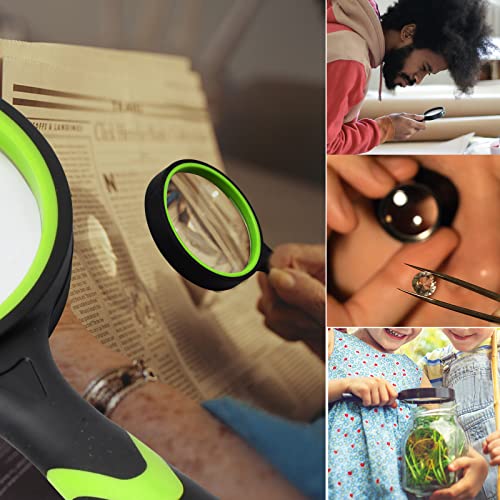 Lente d'ingrandimento 8x, 75 mm Portatile Lente di Ingrandimento da Lettura Manuale con Impugnatura in Gomma Morbida Antiscivolo per Lettura, Riparazioni, Osservazione,Bambini, Anziani