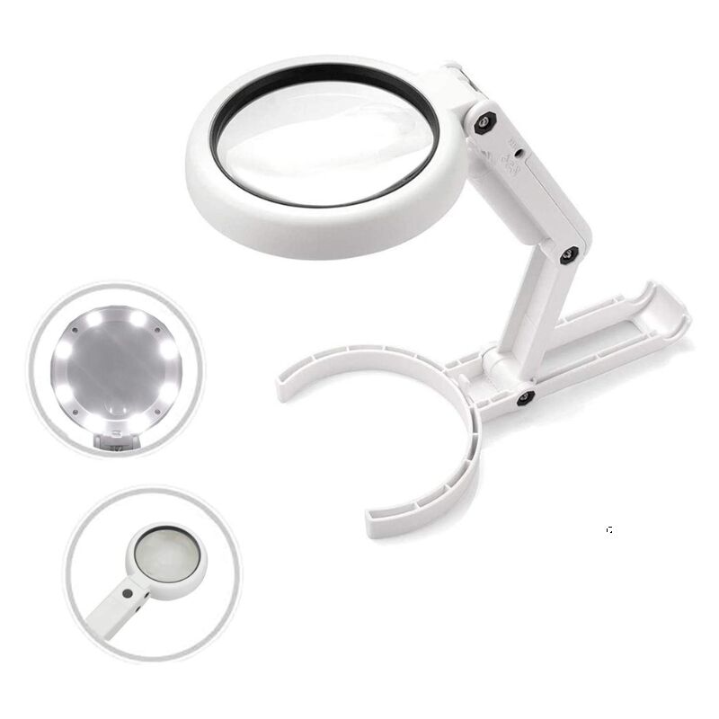 Lente d'ingrandimento tascabile o da scrivania - Questa lente d'ingrandimento può essere utilizzata in due modi. Basta allungare il supporto e posizionarlo sulla scrivania come lente d'ingrandimento da tavolo. Chiudere i supporti per fungere anche da lente d'ingrandimento portatile, che amplia l'ambito di applicazione. Alta qualità dell'obiettivo: la lente d'ingrandimento è rinforzata e ha una durezza fino a 5 ore, che è più resistente all'usura. Fornisce un ingrandimento dell'immagine più chiaro. C'è anche un panno per lenti nella confezione che ti consente di pulire l'obiettivo per darti un obiettivo più professionale senza deformazioni. 8 LED Bright Light - Questa lente d'ingrandimento ha 8 potenti lampade a LED ad alta efficienza energetica che fornire una luce intensa e consentire di lavorare al buio. Rendi il tuo ambiente di lavoro più confortevole, migliora la tua efficienza, proteggi efficacemente la vista e previene l'affaticamento degli occhi. Design a doppio circuito: la