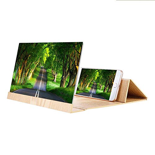 Lente d'Ingrandimento per Schermo del Telefono, Supporto per Display da 12 "in Legno con Amplificatore per Schermo per Telefono (Oro)