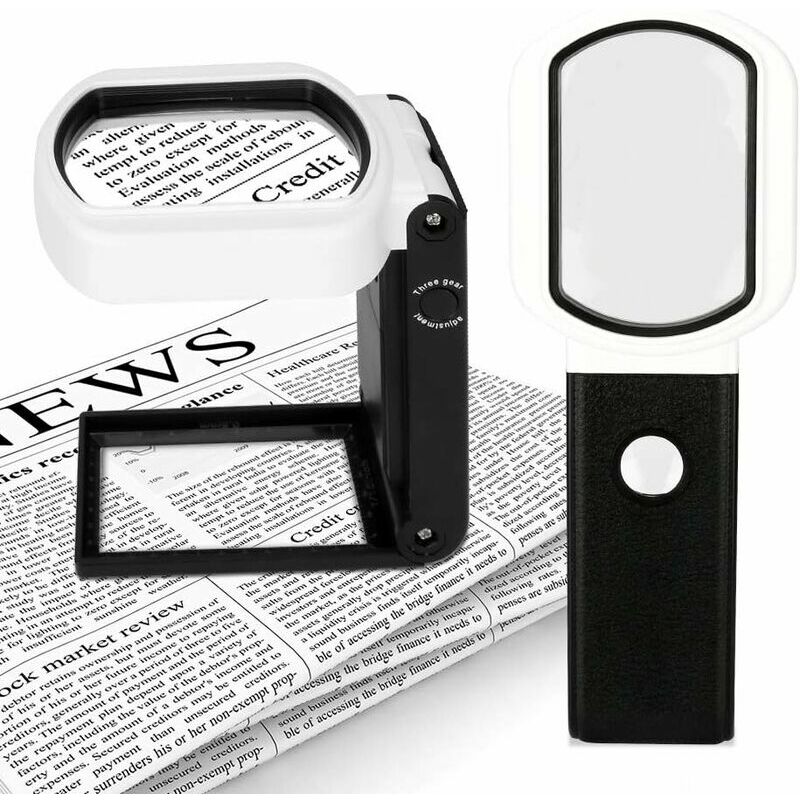 Inoltre, le lampade UV possono aiutarti a verificare l'autenticità delle banconote. 【Due tipi di lettura e base con scala laser】 Questa potente lente d'ingrandimento ha due modalità di lettura: lettura portatile e in piedi, solitamente palmare, design leggero ( solo 180 g) lo rende