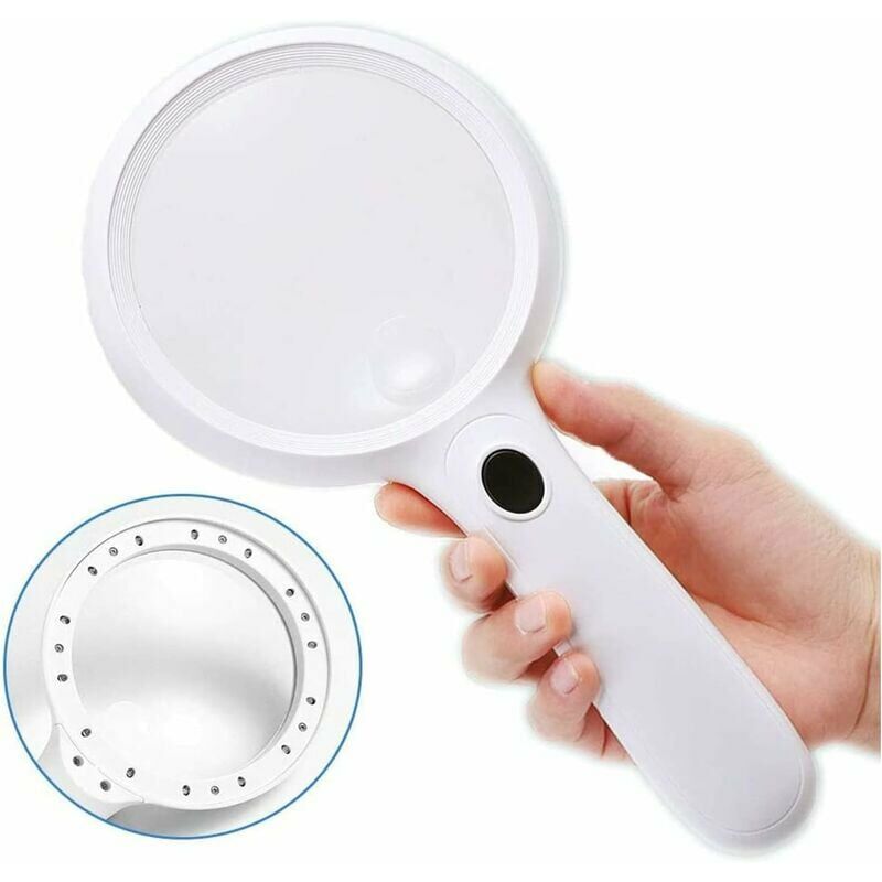 Obiettivo ottico extra grandangolare HD - Obiettivo resistente ai graffi, diametro 120 mm, obiettivo in vetro ottico che fornisce un'eccellente immagine di alta qualità senza distorsioni. Lenti robuste e resistenti ai graffi per un utilizzo a vita sono l'ideale. Le luci a LED forniscono una buona illuminazione - Le luci a LED super luminose ed efficienti dal punto di vista energetico forniscono una buona illuminazione in condizioni di scarsa illuminazione. Dispone di 14 LED ed è alimentato da 4 batterie AA [senza batterie]. Design leggero e portatile - Design leggero. Dopo aver guardato a lungo, le braccia non si stancheranno. Il manico è progettato ergonomicamente per adattarsi a mani di tutte le dimensioni, rendendolo più comodo da usare. Ottimo regalo: la lente d'ingrandimento trasparente è perfetta per anziani e adulti. L'Ultra HD aiuta gli anziani a leggere facilmente e i bambini a esplorare cose nuove.