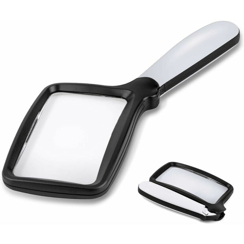 Contenuto della confezione del prodotto: 1 lente d'ingrandimento tascabile pieghevole con luce 1. 【Lettura naturale con obiettivo pagina】 Lente d'ingrandimento rettangolare ampia e ampia che simula in modo speciale il modo in cui vediamo le cose in modo naturale. L'obiettivo principale misura 4,35 x 2,52 e copre un'ampia area di visualizzazione, senza che le mani si muovano continuamente. Una lente trasparente ingrandisce fino a 3 volte, il che è davvero utile per leggere caratteri piccoli! 2. 【Manico pieghevole leggero】 Con una comoda impugnatura, facile da impugnare. Ideale per chi ama leggere più a lungo. La maniglia può essere piegata, facile da trasportare e ricevere. Portalo ovunque con te! Regalo perfetto per i tuoi genitori, amici o partner. 3. 【Illuminazione dimmerabile a 5 LED luminosi】 I LED a risparmio energetico forniscono un'illuminazione perfetta per vari punti, a seconda delle esigenze. Con luce forte e luce soffusa?, due opzioni di luminosità si adattano alle diverse