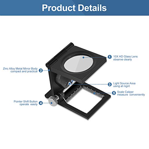 Ingrandimento 10X: la lente d'ingrandimento pieghevole con ingrandimento 10x ha eccellenti prestazioni ottiche, che ti consentono di controllare chiaramente il tessuto e concentrarti anche su piccoli dettagli