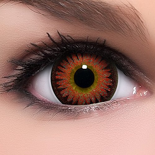 Lenti a contatto colorate Circle Lenses"Bambi Red" in rosso, morbide, non corrette + 10ml di soluzione combinata, in confezione da due - prodotto a marchio di qualità superiore, Cosplay Anime Manga