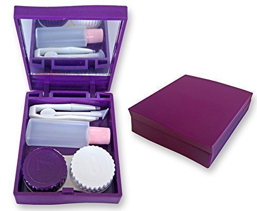 Lenti A Contatto Kit Da Viaggio Astuccio (Viola) ~ Specchio Pinzette & Soluzione Stoccaggio Set per lenti