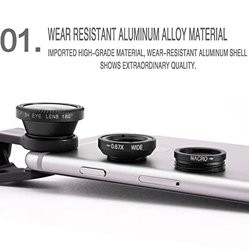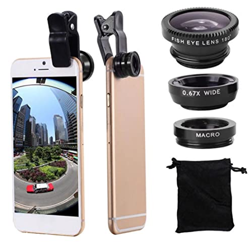 Kit per lenti per fotocamera cellulare Lente grandangolare MACRO LENS A MACRO LENTE PESCE ESEGUITO CON COMPATIBILE CON MOSTRA Smartphone (Nero)
