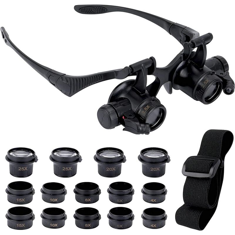 Osservazione con un occhio solo: considerando il suo carattere di osservazione dell'area, si suggerisce di osservare con un occhio solo. Non è possibile mettere a fuoco quando si utilizza un obiettivo a due occhi contemporaneamente. timeLunghezza focale: maggiore è l'ingrandimento, minore è la focale lunghezza.Regola la lunghezza focale da 0,2-10,2 pollici (0,5-25,9 cm) cambiando lenti diverse Lenti sostituibili: sono incluse 8 paia di lenti con diversi ingrandimenti (2,5, 4, 6, 8, 10, 15, 20, 25). Per un esame più ampio, fare riferimento all'ingrandimento da 2,5X a 8X Design umanizzato: dotato di luce a LED, può aiutarti a lavorare in condizioni di scarsa illuminazione. Il supporto e l'archetto rimovibili garantiscono un'usura stretta e riducono l'affaticamento Ampio utilizzo: può essere utilizzato nella lavorazione meccanica, elettronica riparazione, valutazione gioielli, riparazione di orologi e incisioni in miniatura, ecc."