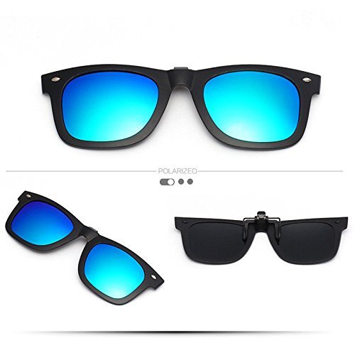 Lenti per occhiali da sole a clip polarizzate a specchio, sollevabili, di plastica, alla moda, colore sky blu, per uomo e donna, per tutte le stagioni