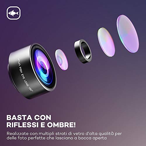 VAVA Lenti Smartphone Obbiettivi Smartphone Super Grandangolare 0.36X, Macro 15X e Lente Fisheye, Placca Posteriore Riflettente per i Selfie, Compatibile con iPhone 7, 6, 6S, 6S Plus, Samsung, ECC