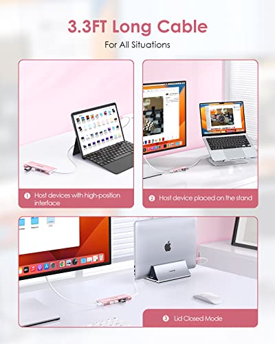 LENTION 6-in-1 Hub USB C con Cavo Lungo 1M, HDMI 4K, 4 USB 3.0, PD 60W Ricarica di Tipo C, Adattatore per 2023-2016 MacBook Pro M2 M1, Mac Air, iPhone 15 Plus Pro Max, Surface (C35-1M, Oro Rosa)